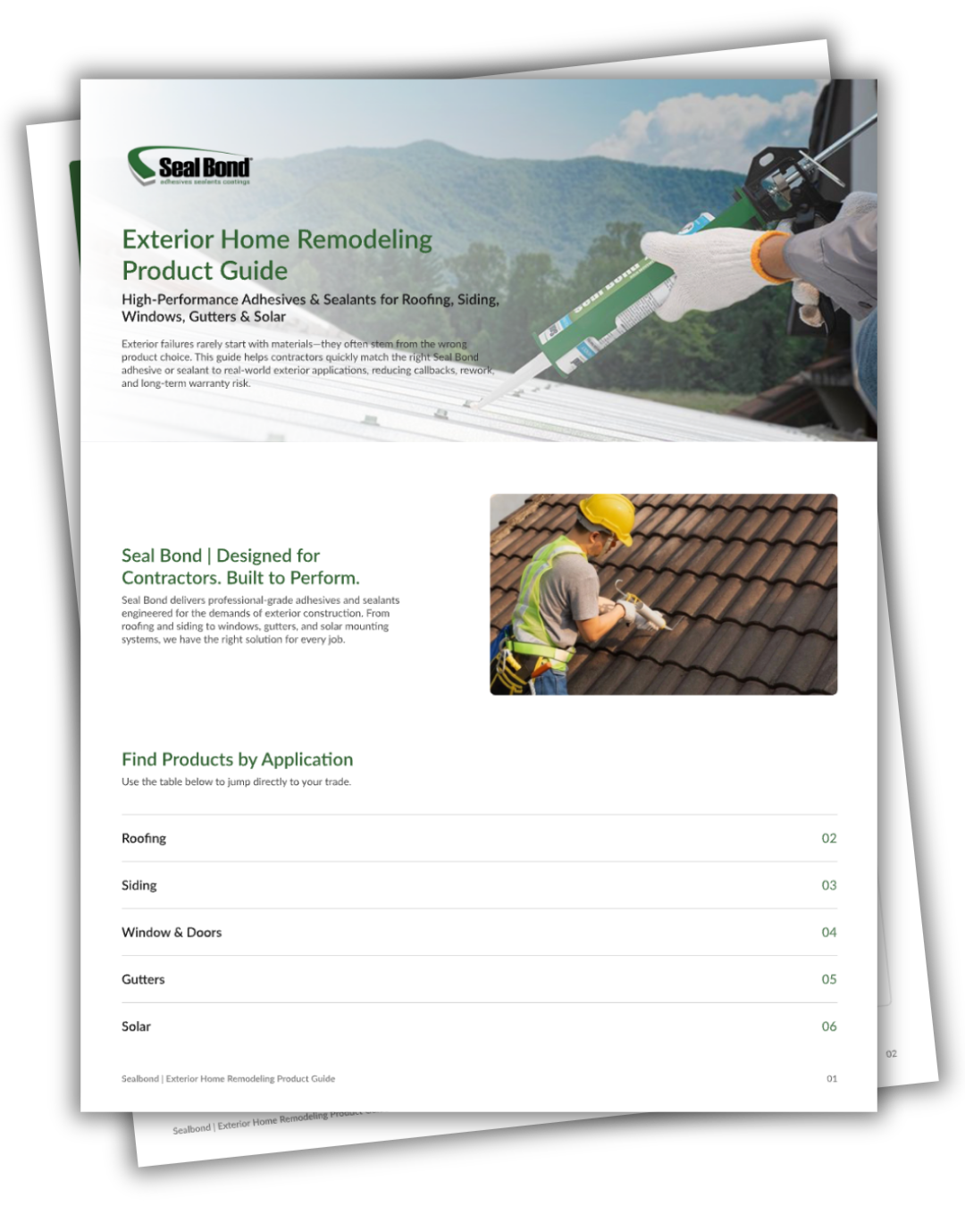 Our Exterior Home Remodeling Product Guide breaks down recommended solutions by application, making it easy to choose the right sealant the first time.